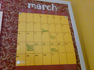 Up until this point, I haven't done any decorating in the kitchen. I needed to settle on a basic color scheme. It has proved difficult because the entry, living room, hall, and the kitchen are all open to one another. For the living room area, I had relied on a craigslist dot "wall thingy." The living room is blue hues and accented with more colors from the "wall thingy." Yes, I'm going to keep calling it that. So, I pulled it out and went to matching up scrapbook paper. I've settled on green hues for the kitchen.